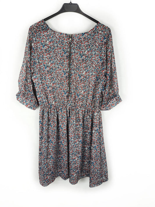 MICHONET. Vestido midi rosa palo bordado. T XS