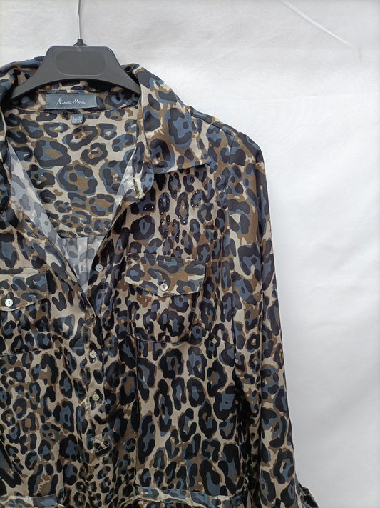 ANNA MORA. Blusa animal print detalle pedrería. T XL