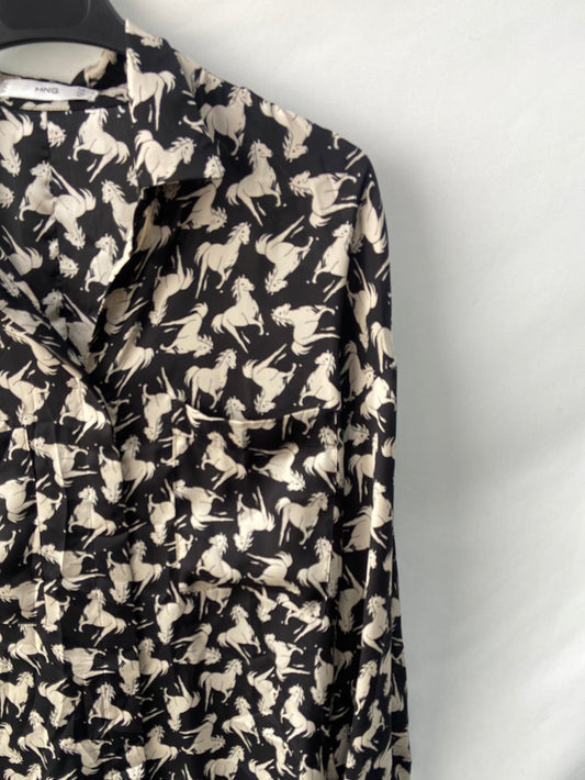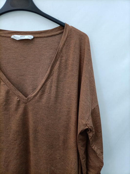 MANGO. Camiseta azul manga larga cuello pico. T.S