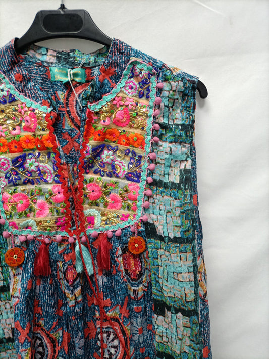 ANNE L. Blazer estampado con coderas de terciopelo. T.XL