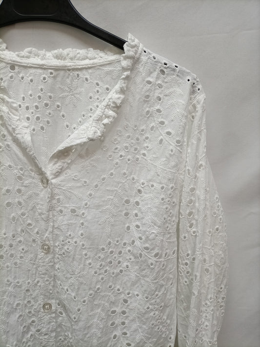 OTRAS. Blusa blanca volante y botones pedrería. T S