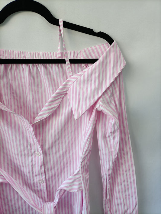 OTRAS. Camisa corta de cuadros rosas y blancos T.U