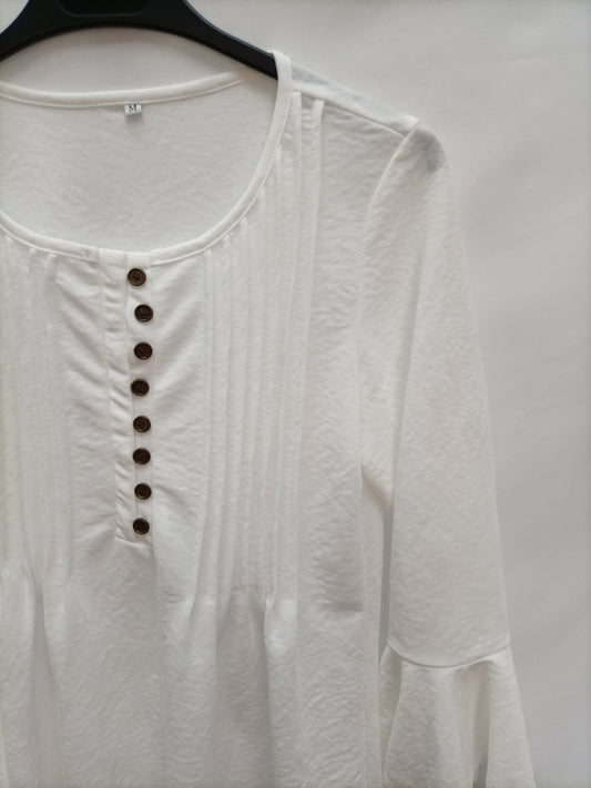 OTRAS. Camiseta blanca detalle cuello y mangas. TM