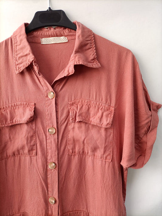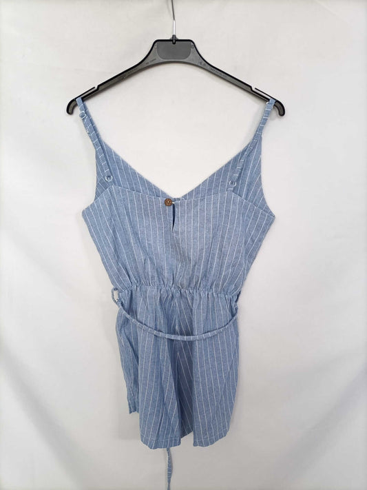 OTRAS. Mono rayas azul claro volante. T 8-10 años