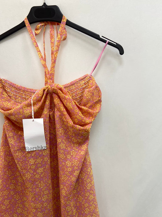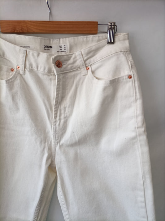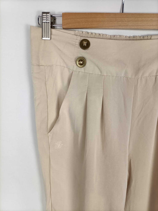 BERSHKA.Pantalones elásticos camel pinzas T.34