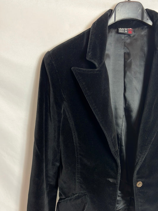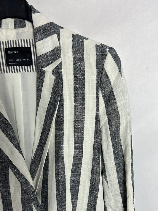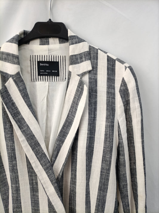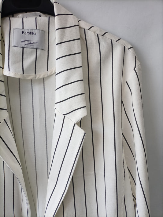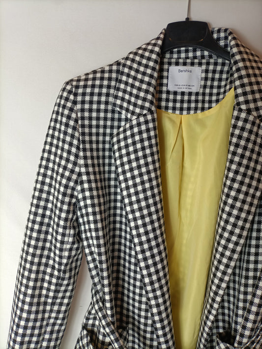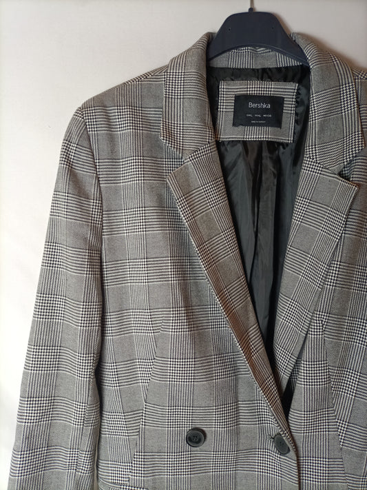 BERSHKA. Blazer larga cuadros botones dorados. T M