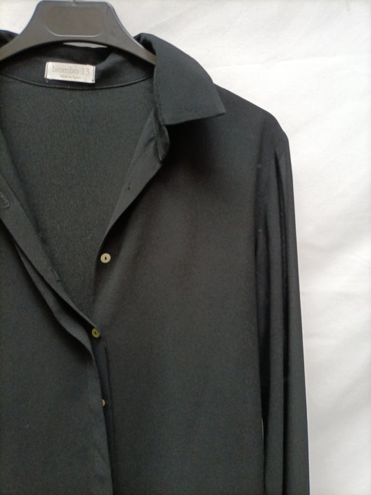 BIMANI. Blusa verde fluida lazada cuello botones dorados. T XL