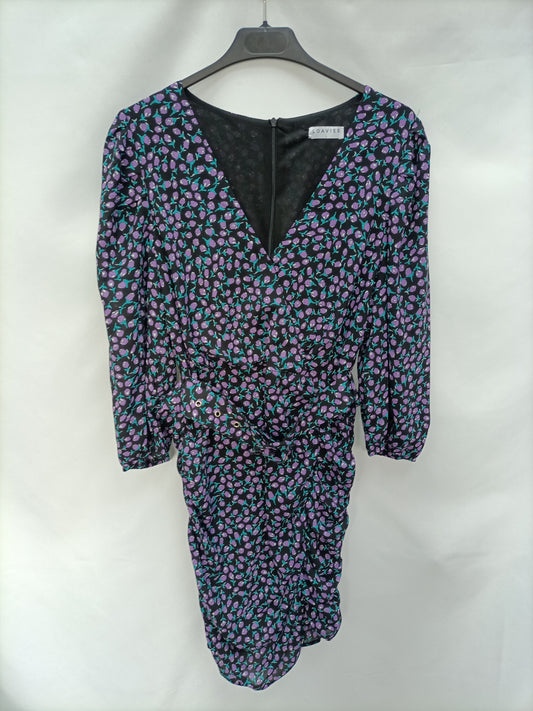 LOAVIES. Vestido. corto amarillo estampado flores T. xs