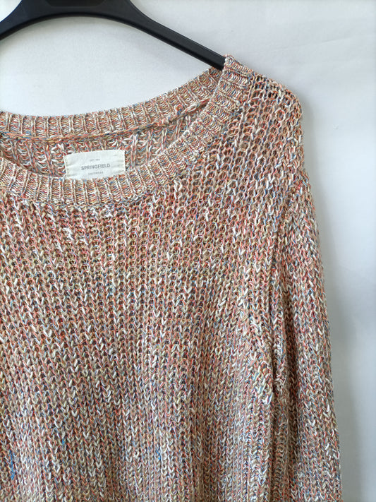 SPRINGFIELD. Jersey beige flores bordadas. T L (S/M)