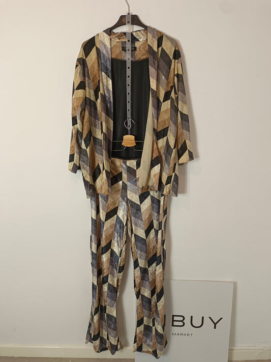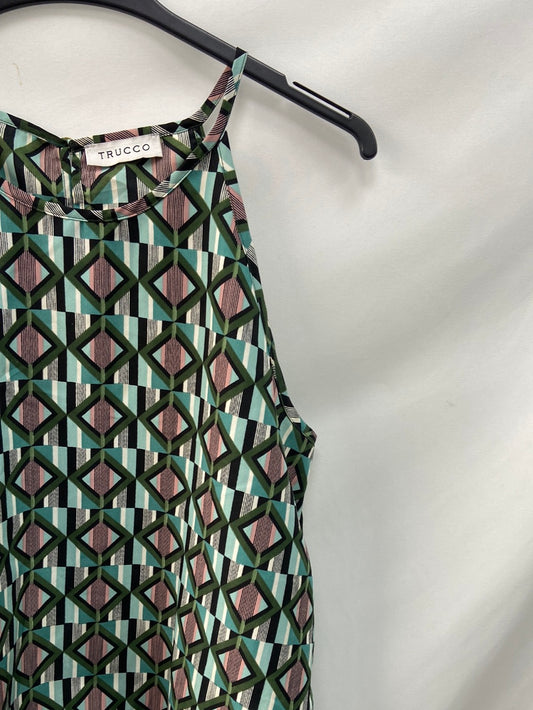 TRUCO. Vestido morado de tirantes estampado geométrico T. m