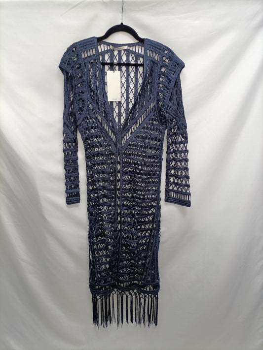 UTERQUE. Cinturón ancho piel azul. T 80 (tara)