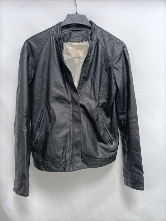 UTERQÜE. Chaqueta marrón chocolate piel. T M
