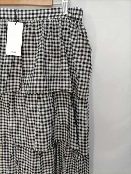 MANGO. Falda midi cuadros vichy apertura. T XS
