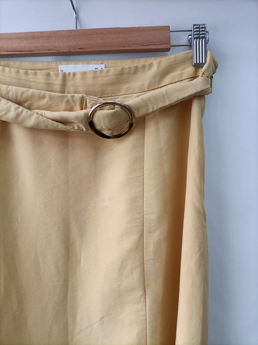 MANGO. Falda midi puenteo beige apertura. T XS