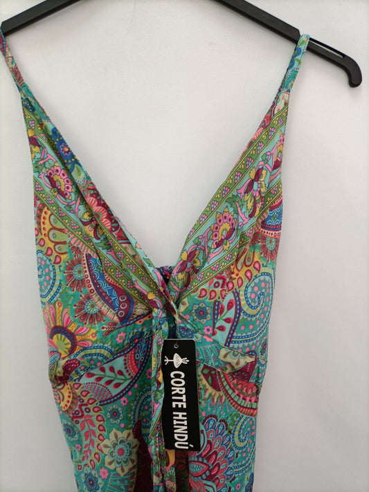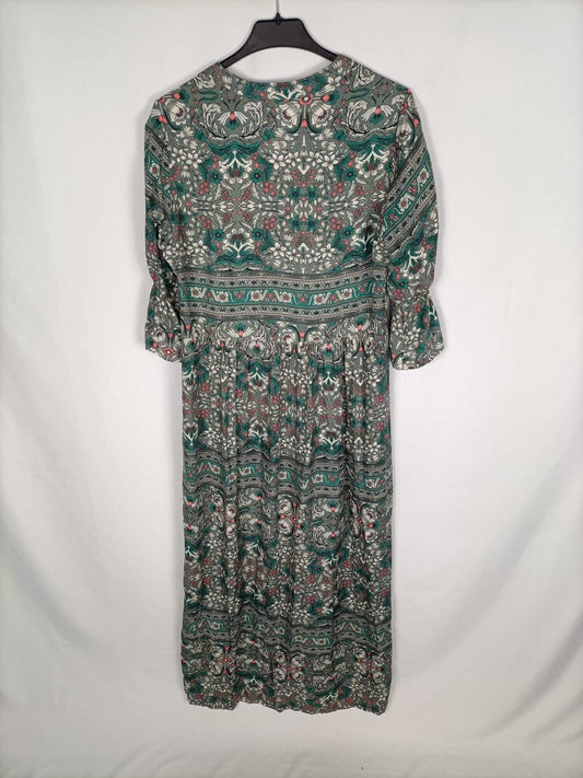 OTRAS. Vestido largo flores detalles dorados. T S