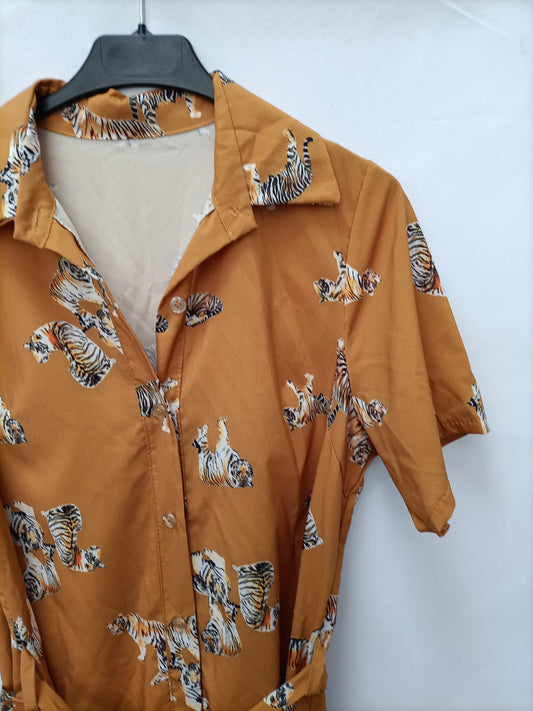 OTRAS. Vestido largo semi transparente animal print T S