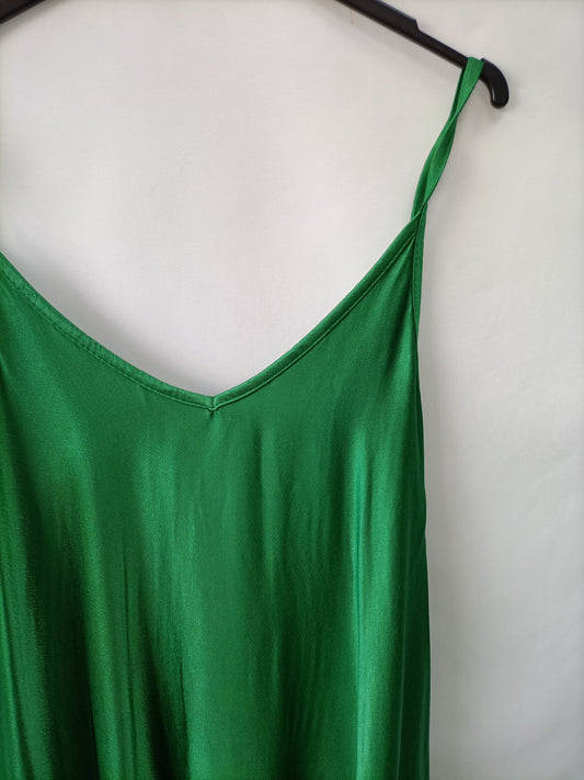 OTRAS. Vestido largo verde asimétrico. T XS/S