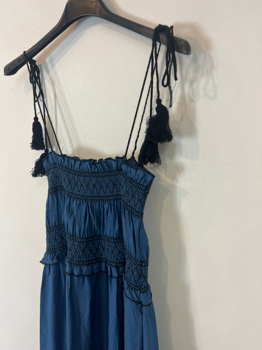 OTRAS. Vestido midi Lino verde efecto desgastado. T 40(36)
