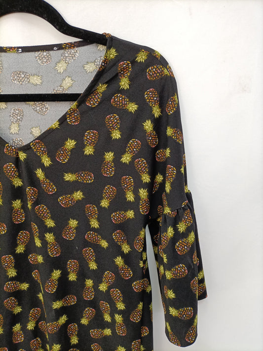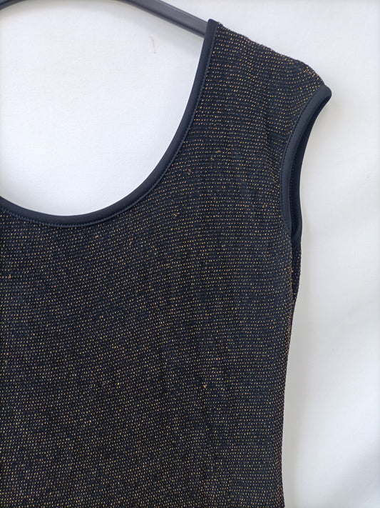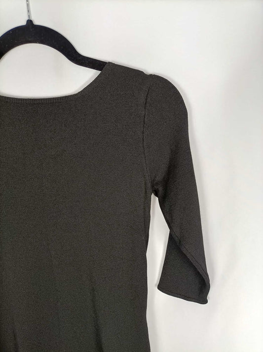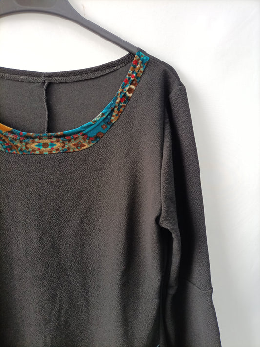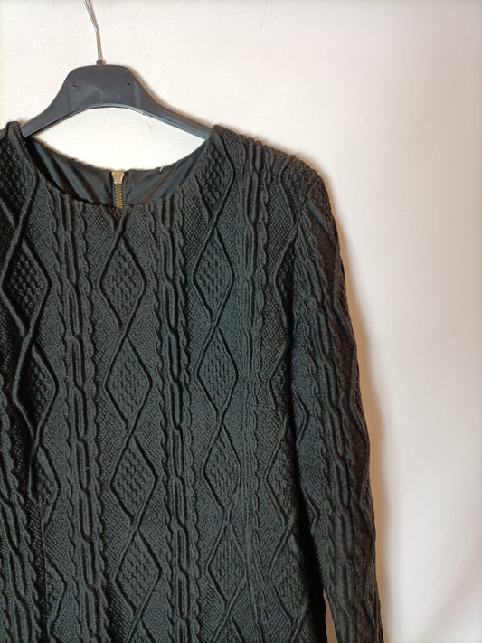 OTRAS. Vestido negro flores textura y lentejuelas T.u