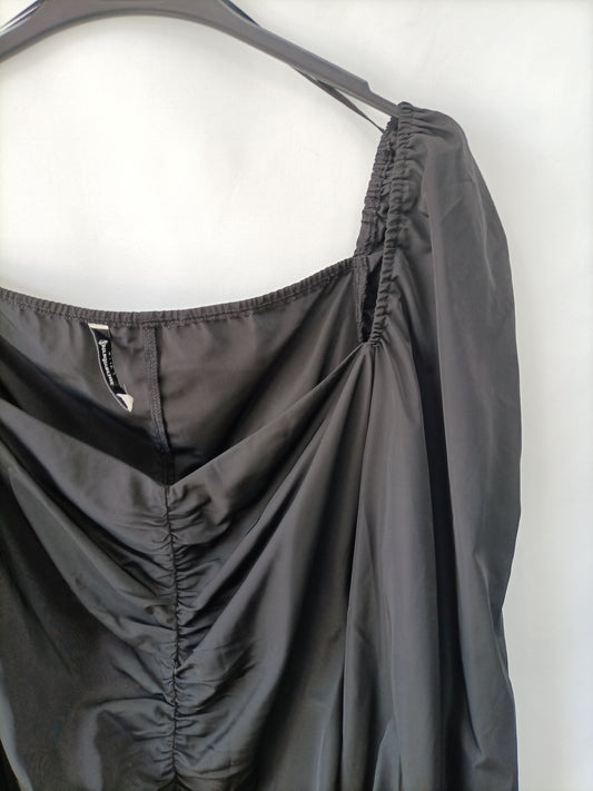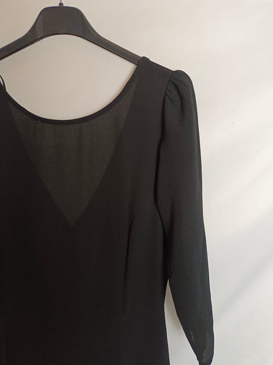 STRADIVARIUS. vestido negro estampado mangas fruncidas T.s