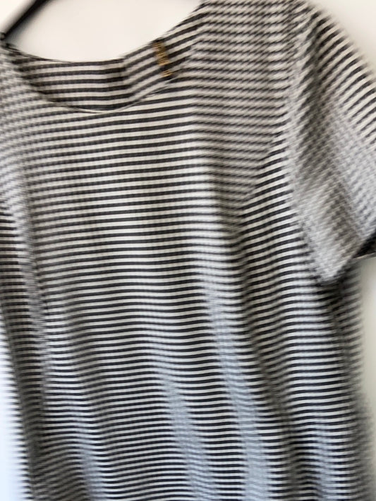 STRADIVARIUS. vestido negro estampado hilos plateados T.s