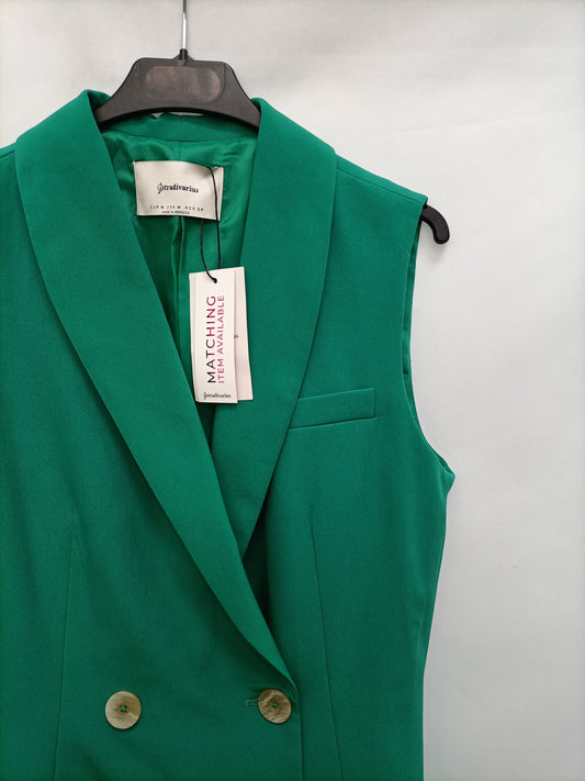 STRADIVARIUS. Vestido/Chaleco corto verde T.m