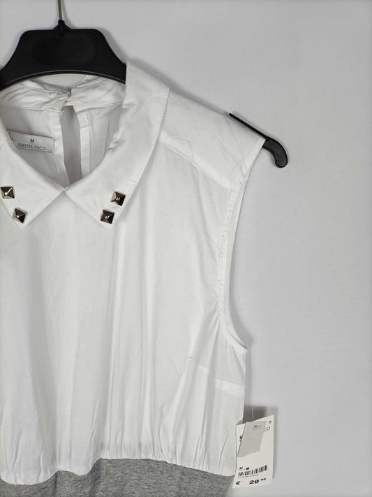 BLANCO.Vestido doble textura gris y blanco T.m