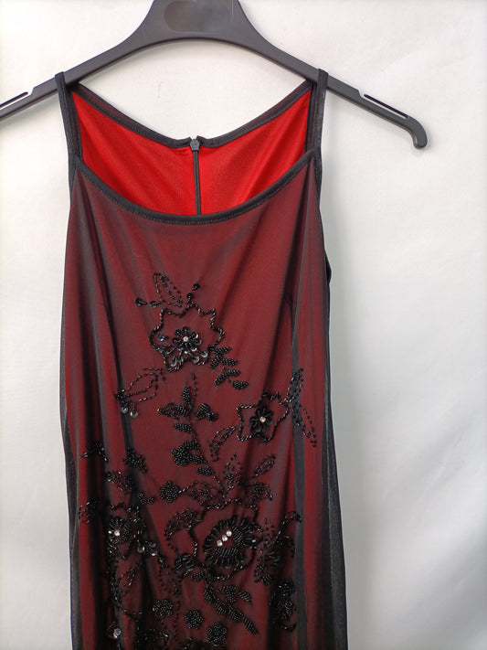 OTROS. vestido largo rojo y negro con pedrería T.U