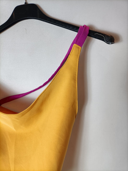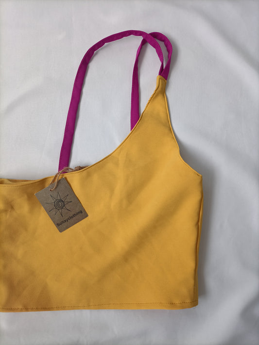 SOLTAYCLOTHING. Crop top mostaza tirantes rosa. T S