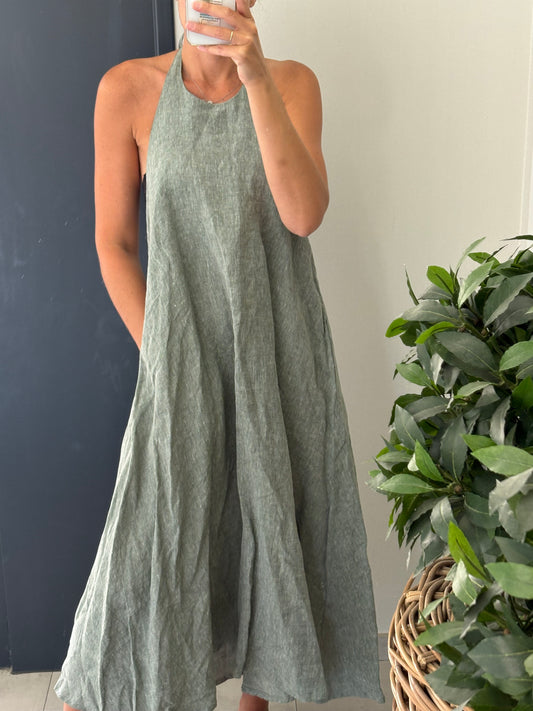 SON FINESTRA MENORCA. Mono largo verde lino Tu(m/l)
