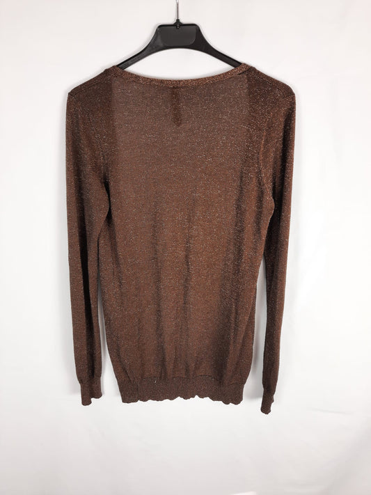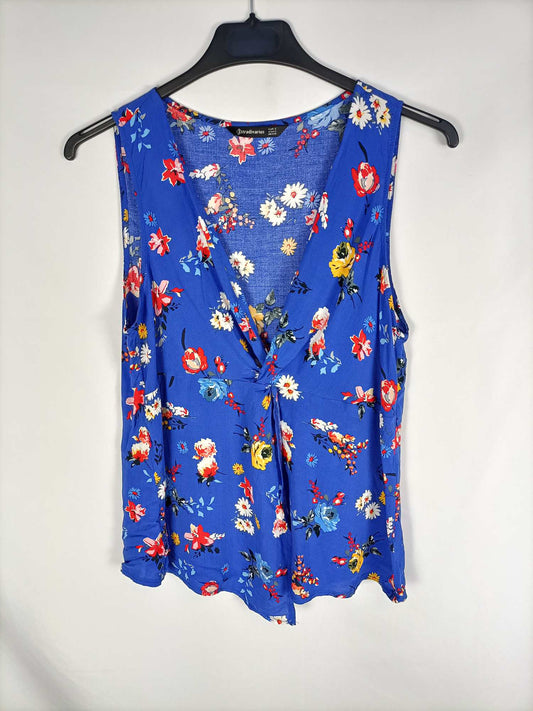 STRADIVARIUS.Top azul cuados semitransparente T.s