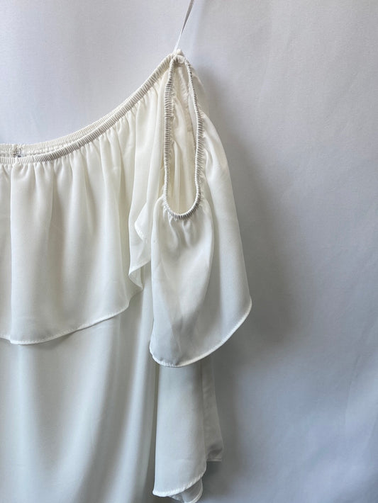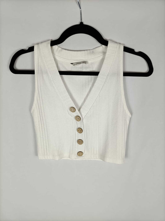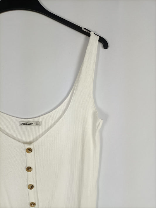 STRADIVARIUS.Top blanco volante hombros descubiertos T.s