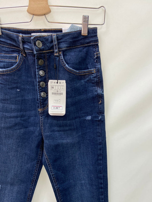 STRADIVARIUS.Pitillos denim oscuro abotonados T.38
