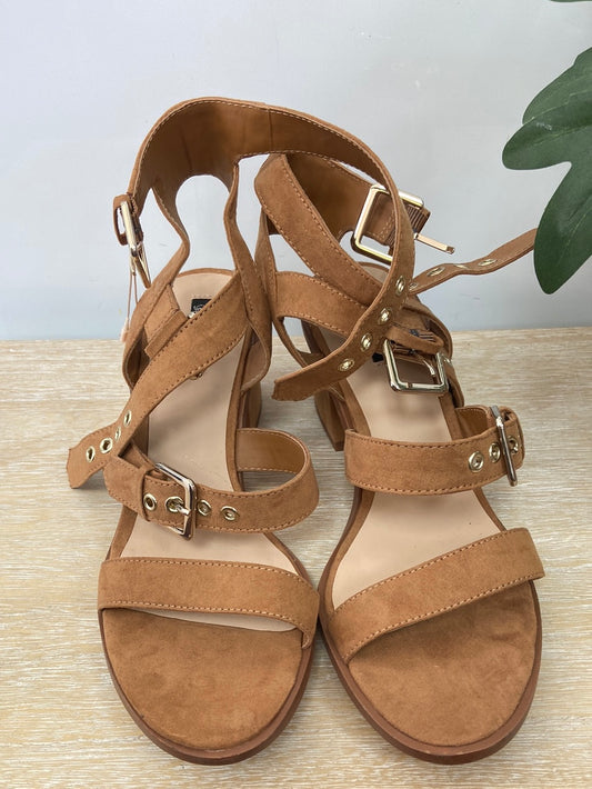 STRADIVARIUS.Sandalia negra tacón tachuelas T.38