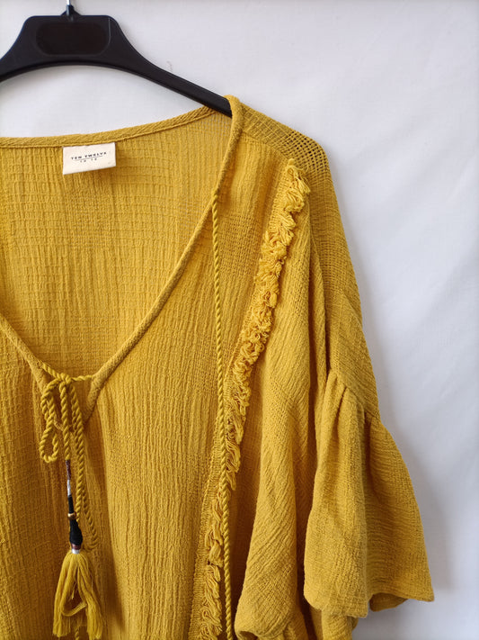 TEN TEWLVE. Vestido mostaza flores T.10/12 (m/l)