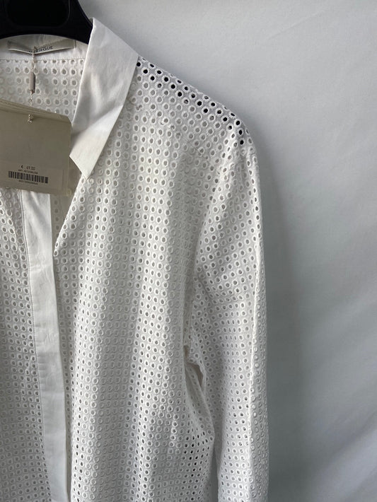 UTERQÜE. Camiseta elástica negra detalle hombros. T L