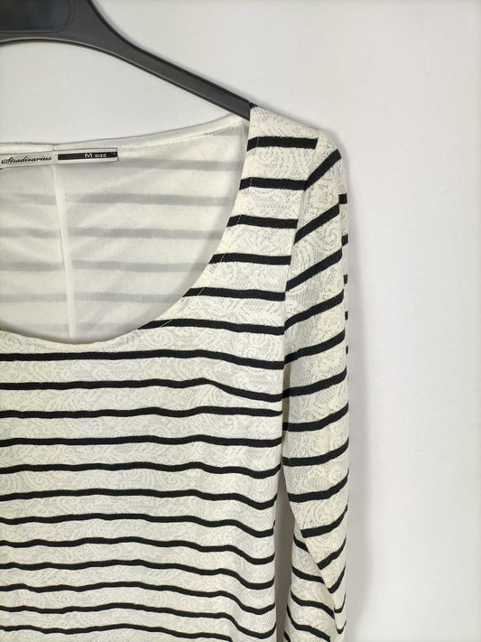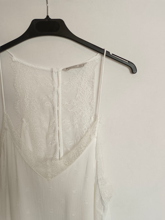 STRADIVARIUS.Top lencero blanco encaje y plumeti T.M