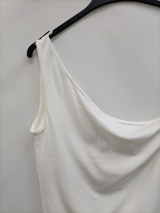 STRADIVARIUS.Top elástico blanco asimétrico T.m