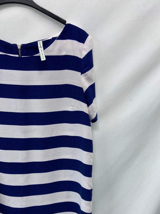 STRADIVARIUS.Vestido azul flores hawaianas T.m