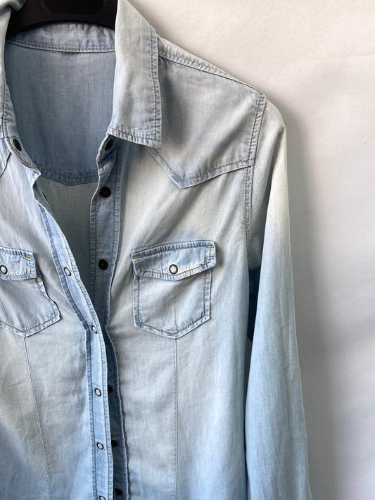 ZARA. Blusa satinada blanca detalles plateados. T L