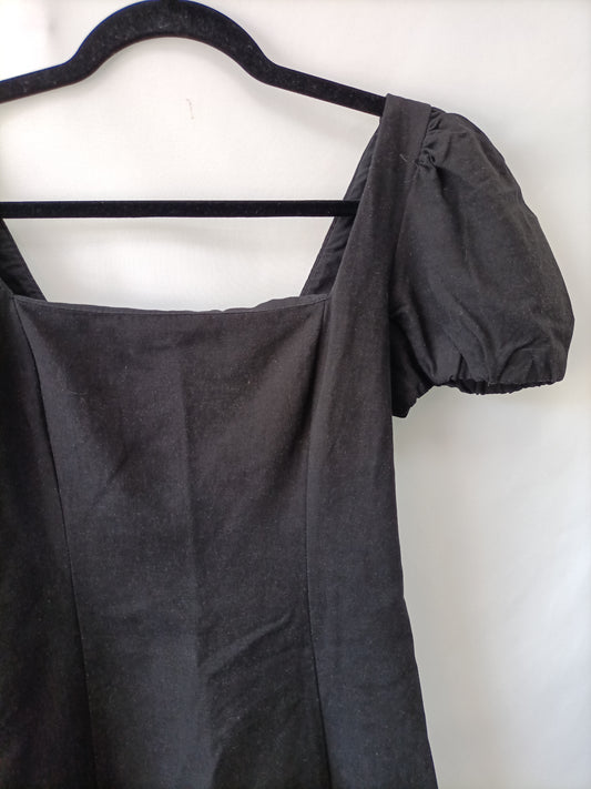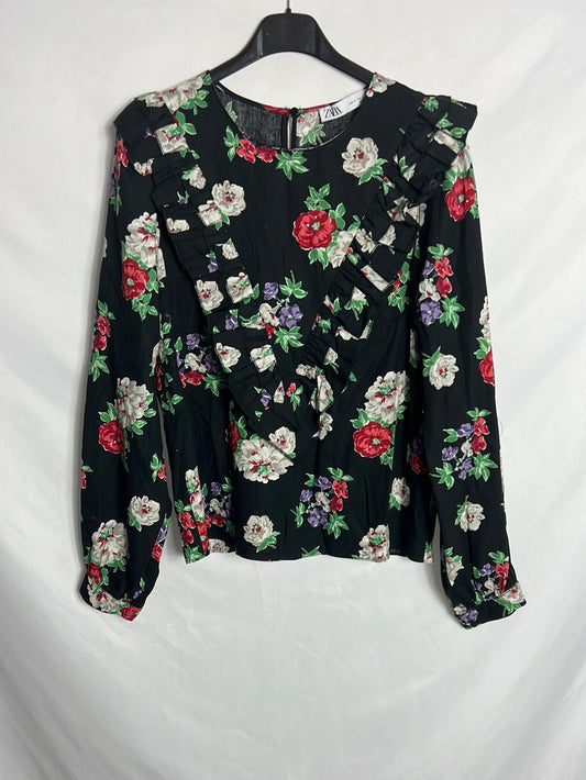 ZARA. Top negro costuras y fruncidos cuello alto. T M