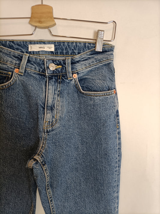 MANGO. Pantalón vaquero recto aperturas. T 34