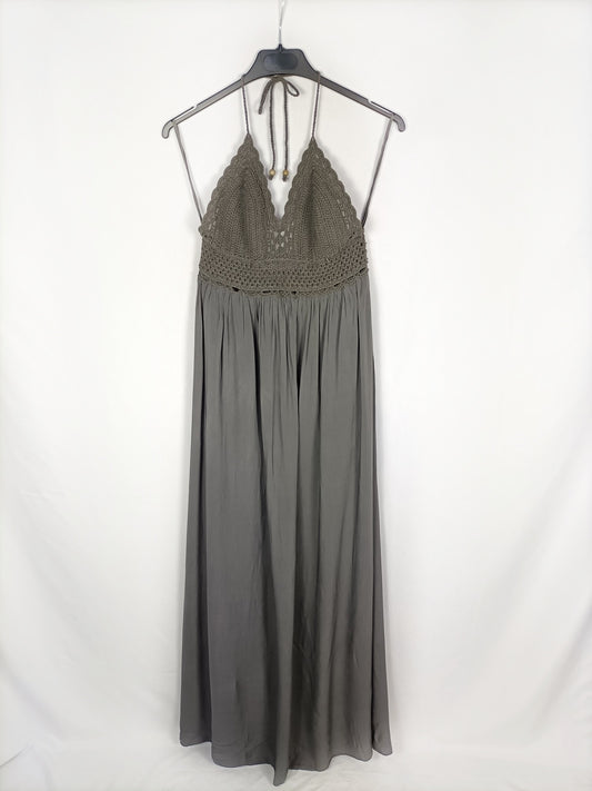 COOSY SISTER. Vestido verde con detalle bordado en mangas y escote T.l