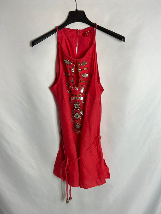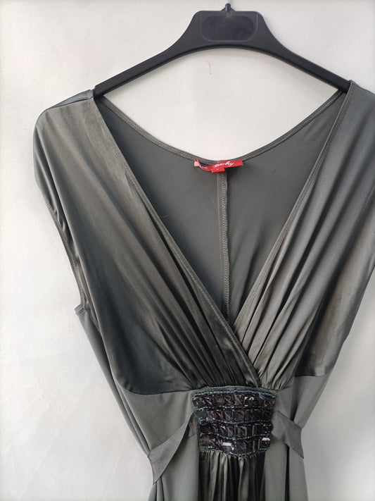 DERHY. Vestido gris fluido con detalle pedrería T.s