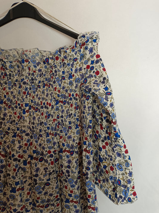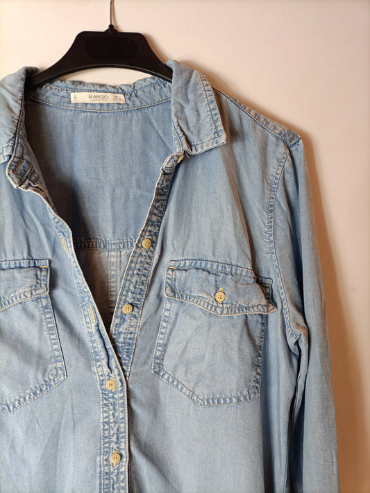 MANGO. Vestido corto azul electrico cintura fruncida T.s