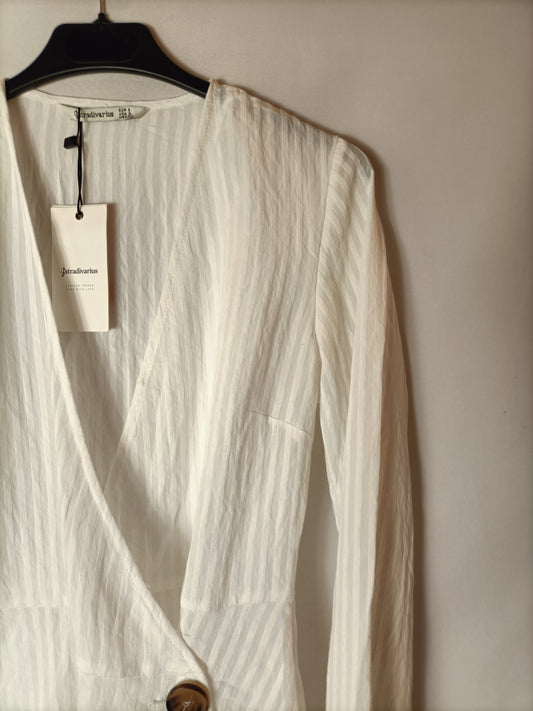 STRADIVARIUS. Blusa blaco roto de manga corta T.s