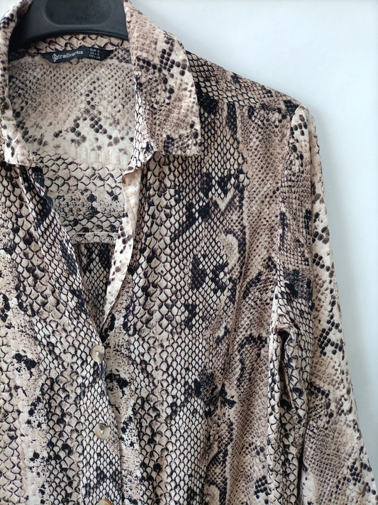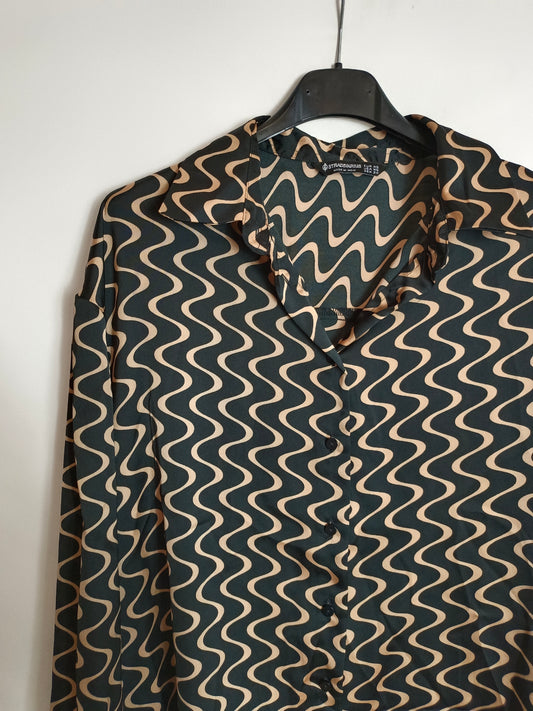 STRADIVARIUS. Blusa fluida estampado retro. T S
