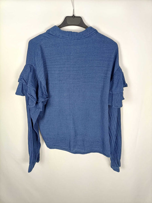 STRADIVARIUS. Blusa azul mangas semitransparentes T.S