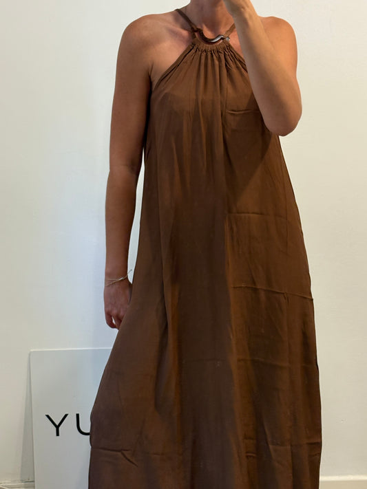 MANGO. vestido largo cuello halter azul fluido T.xs