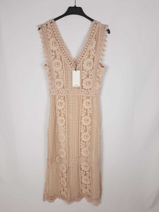 MANGO. Vestido largo estampado lunares detalle espalda. T M